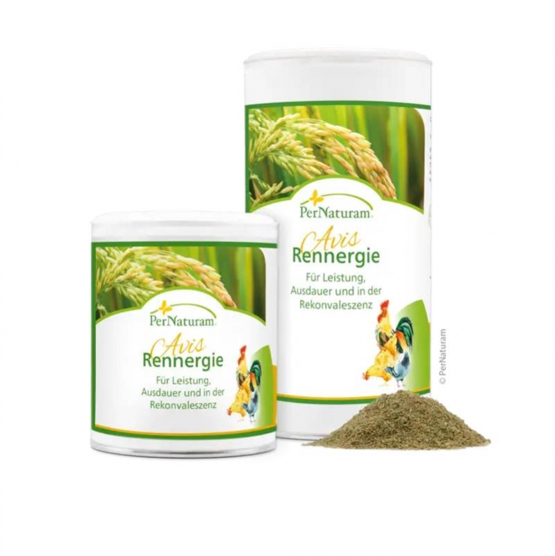Geben Sie 2 x wöchentlich 1 Esslöffel Rennergie Avis auf 500 g angefeuchtetes Grundfutter.