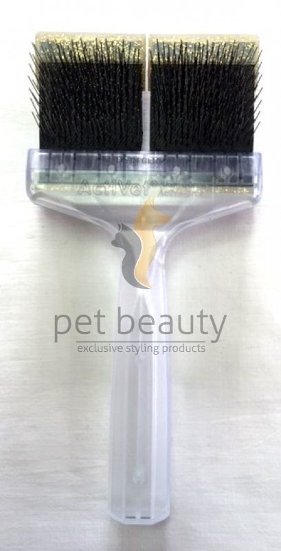 Für dichtes, empfindliches Fell, auch mit Unterwolle, ideal für kleine bis mittlere Rassen und Welpen. Eine leichte, flexible, dennoch sehr leistungsfähige Bürste mit weichen Pins zum Ausbürsten und Entfilzen.