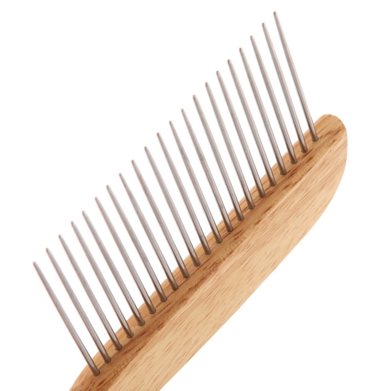 Pudelkamm mit gelochtem Holzgriff, 22cm lang, extra lange Pins (6,5cm) im Abstand von 5mm.