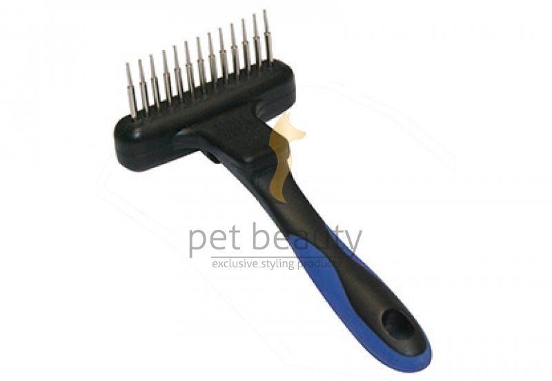 Dieser Striegel zeichnet sich durch rollierende und gefederte Pins aus, die sich der Kontur des Tieres anpassen und dem Groomer erlauben, Verfilzungen und Unterwolle leicht und komplett zu entfernen. Die rollierenden Pins gleiten leicht durch das Fell und machen das Groomen für Tier und Groomer angenehm und schmerzfrei. Ergonomisches Design, rutschfester Griff und T-Form sorgen für ermüdungsfreies Arbeiten.