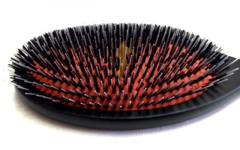 Rotes Gummikissen mit reinen Wildschweinborsten und abgerundeten Nylon-Pins