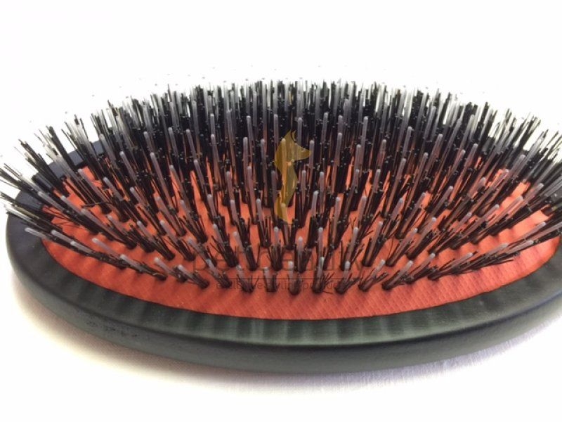 Rotes Gummikissen mit reinen Wildschweinborsten und abgerundeten Nylon-Pins