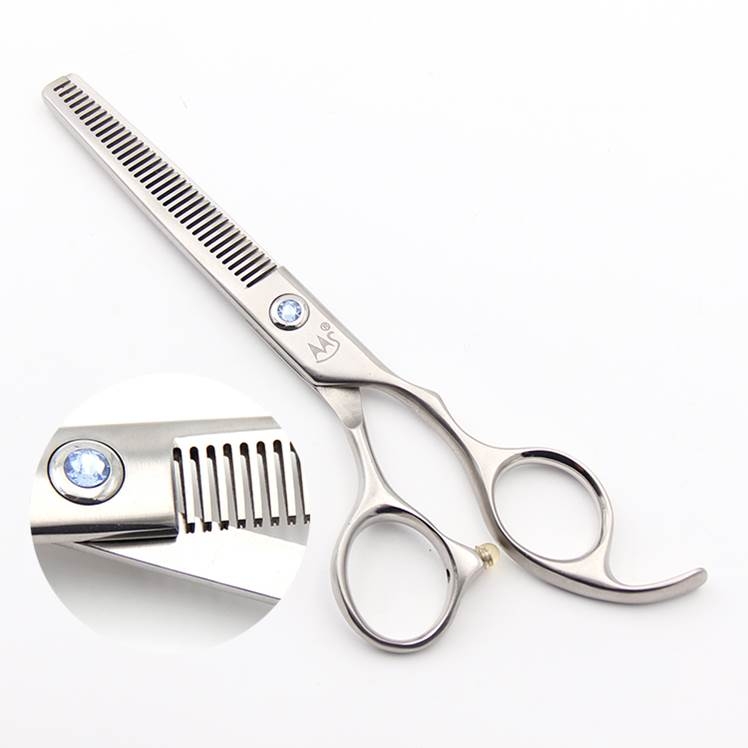 Modellierschere | 6 Zoll | 35 Zähne | matt silber | blauer Stein
