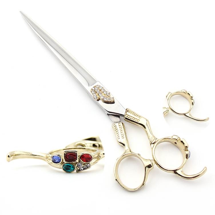 Schneideschere | 7 Zoll | 18 cm | gerade | hochglanz silber | bunte Steine | goldener Griff