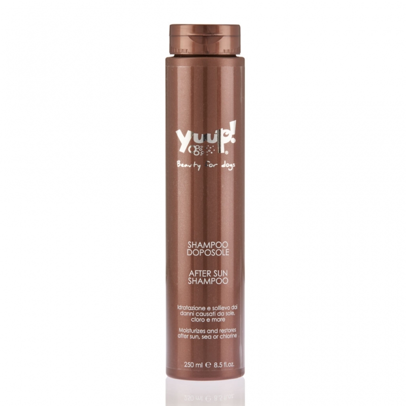 Feuchtigkeitsspendendes und erfrischendes Shampoo speziell für Fell und Haut, die über einen längeren Zeitraum der Sonne, dem Meer und Chlor ausgesetzt sind. Mit Aloe Vera-Extrakt, Aprikosenmilch, Hamamelis- und Melonenwasser, quaternisiertem Keratin, Kreatin und den Vitaminen C+E+Panthenol.