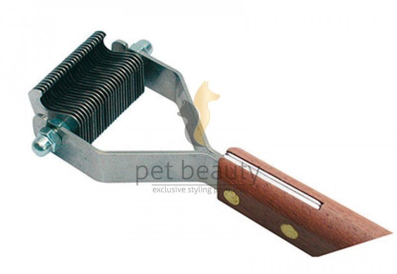 Die Entfilzungsmesser entfernen lose Haare und Unterwolle schnell und effektiv. Der Kopf mit speziell entwickelten abgerundeten Klingen aus gehärtetem Edelstahl ist auf einen gut in der Hand liegenden Edelholzgriff montiert und ermöglicht ermüdungsfreies Arbeiten – besonders wichtig für professionelle Groomer. Entfernt Wolle, Filz und lose Haare für glänzendes Fell und gesunde Haut.