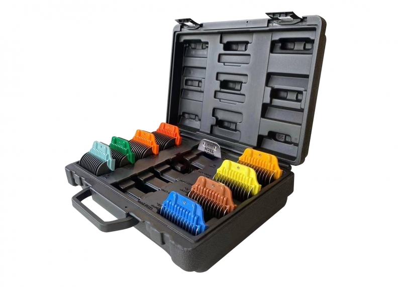Farblich sortiertes Set mit Aufsteckkämmen für den breiten Scherkopf 30W für alle anfallenden Arbeiten am Hund.